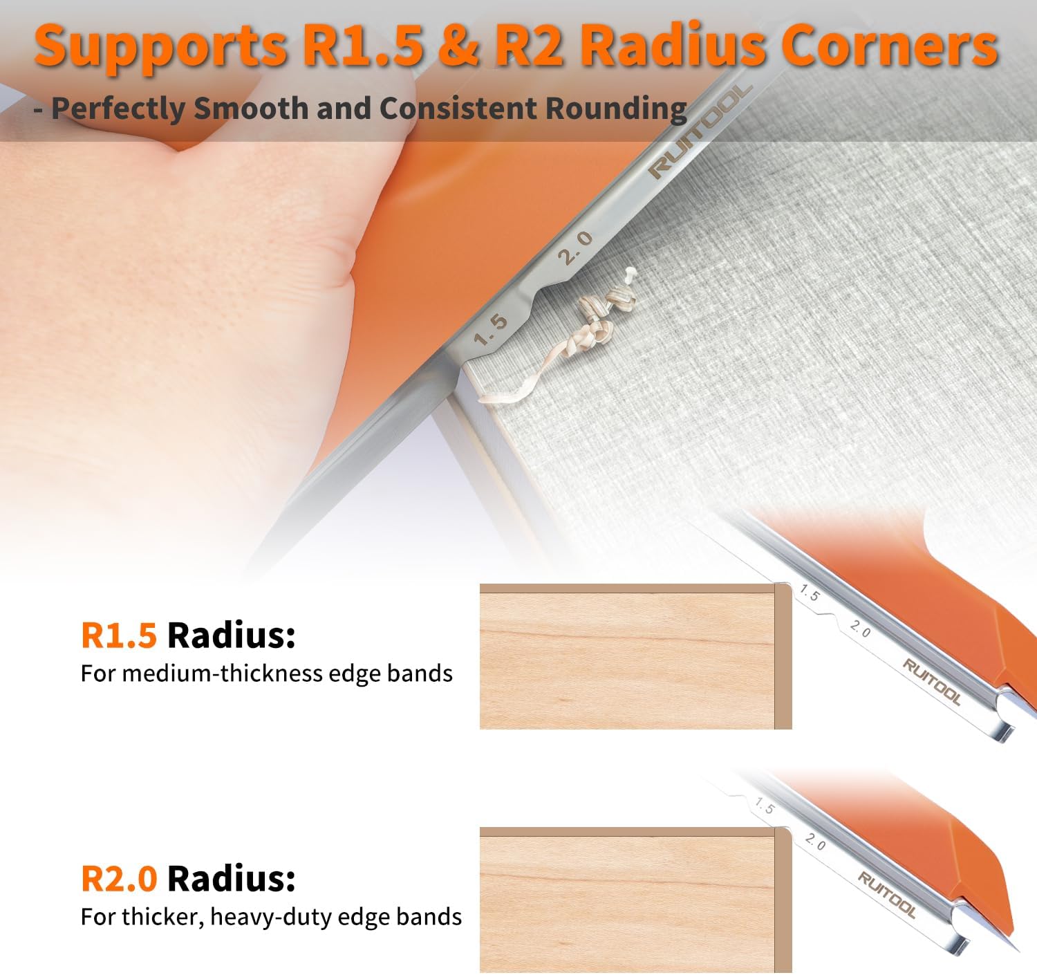 • Supports R1.5 & R2 rounded corner trimming