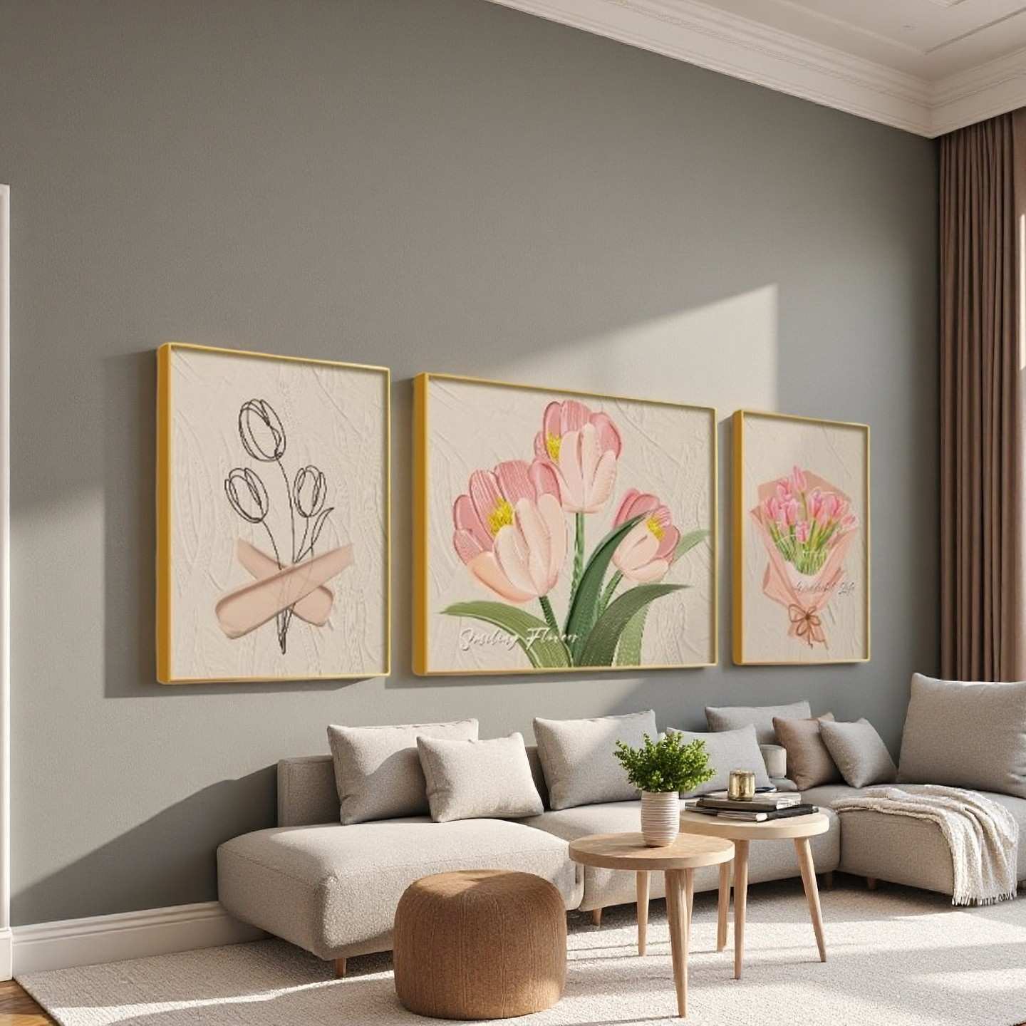• 3-piece coordinated floral wall art set
