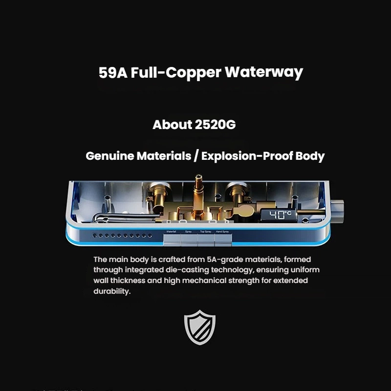 A premium all-in-one smart shower panel designed for modern bathrooms, combining waterfall and rainfall showers, handheld jet spray, massage body jets, LED ambient lighting, and a digital temperature display. Engineered for luxury, durability, and everyday convenience.