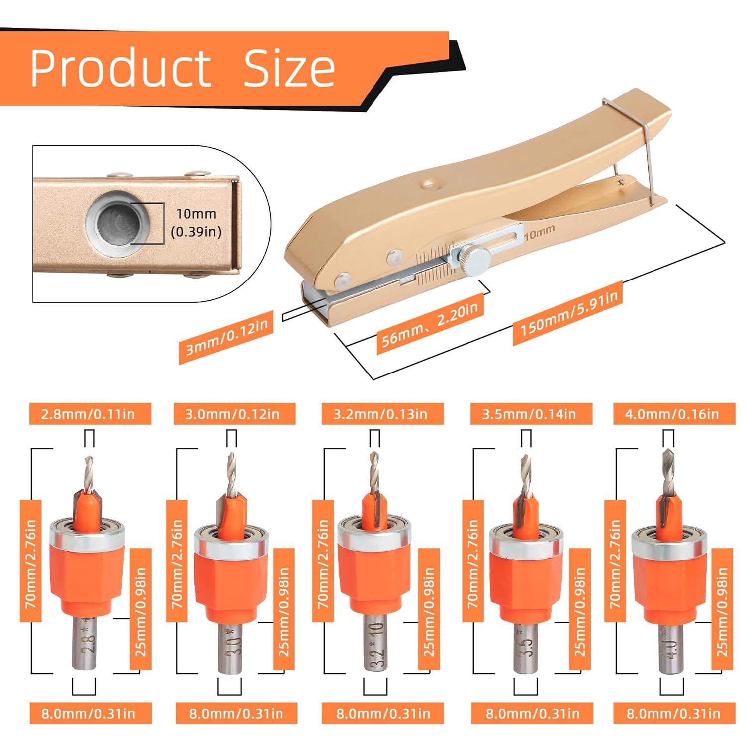 Adjustable Countersink Drill Bit Set with Depth Stop & Hole Punch Pliers