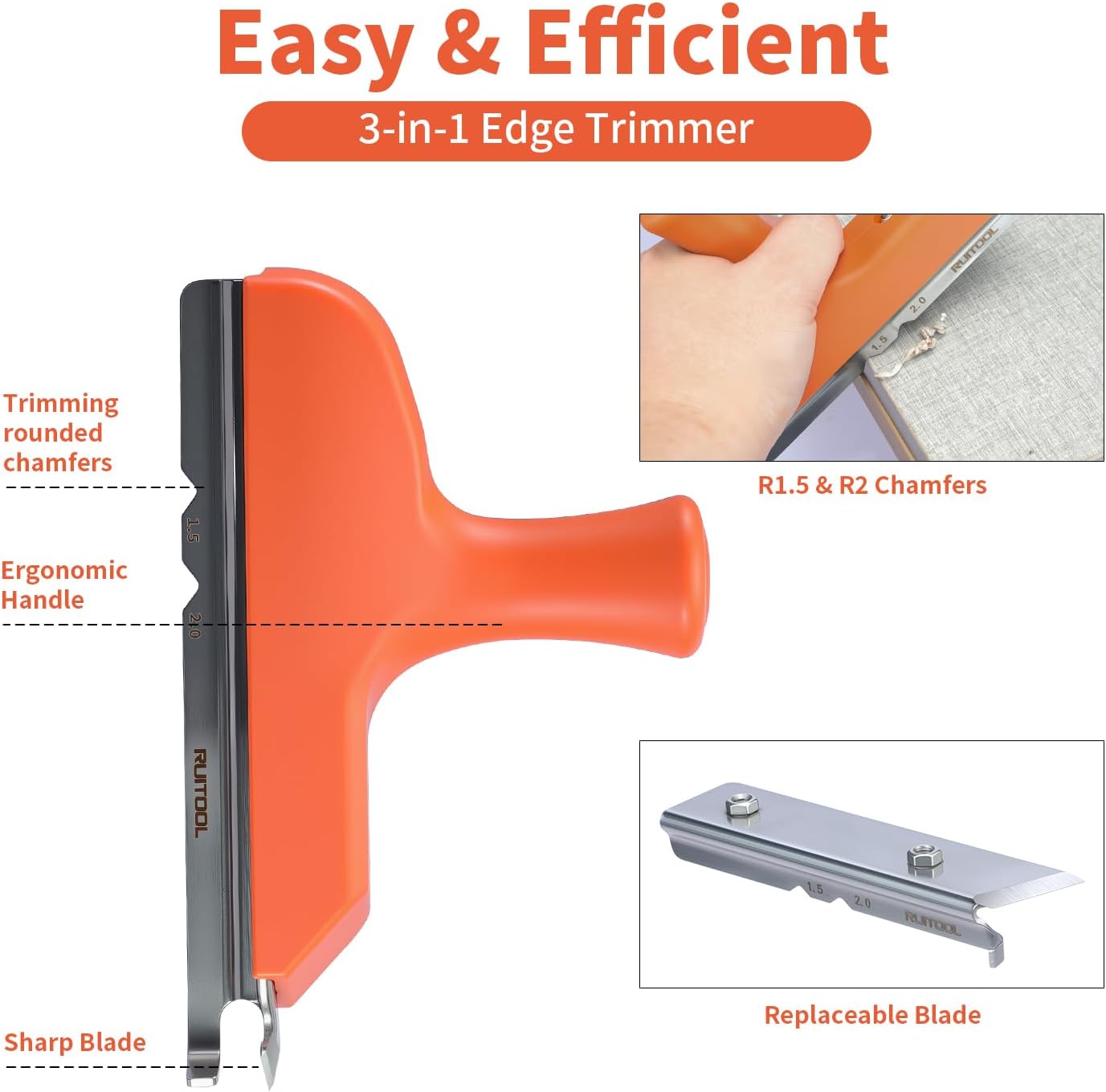• 3-in-1 trimming for straight, curved, and chamfered edges