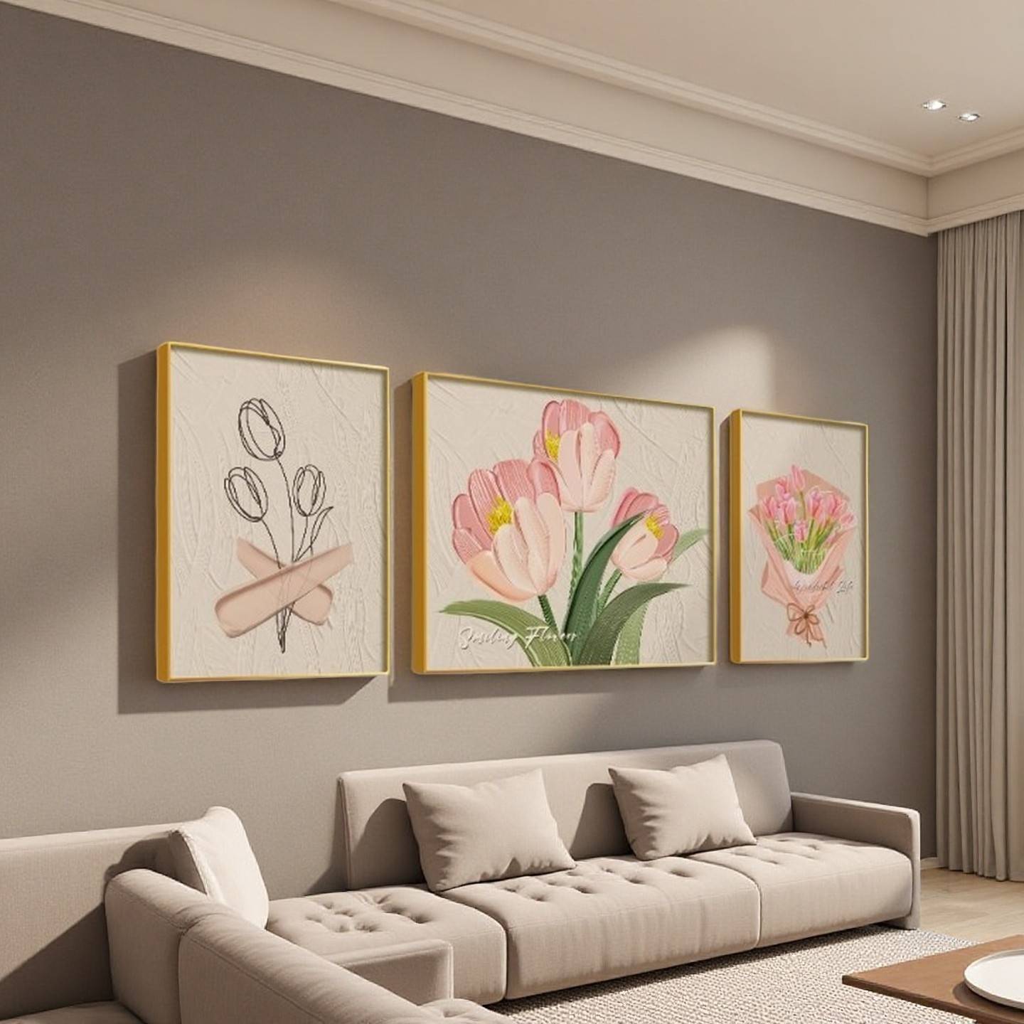• 3-piece coordinated floral wall art set