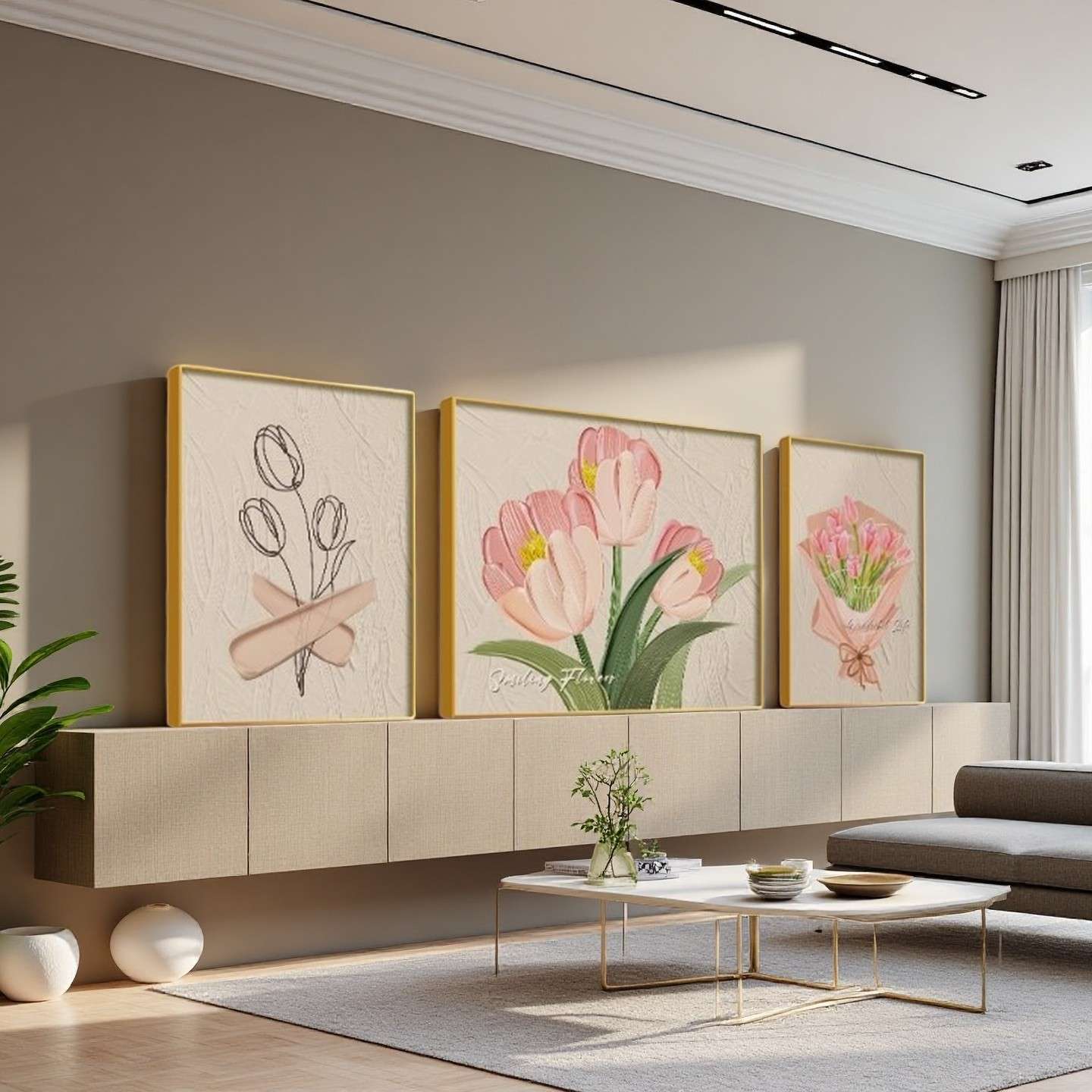 Modern Floral Canvas Wall Art Set (3-Piece Framed Artwork)