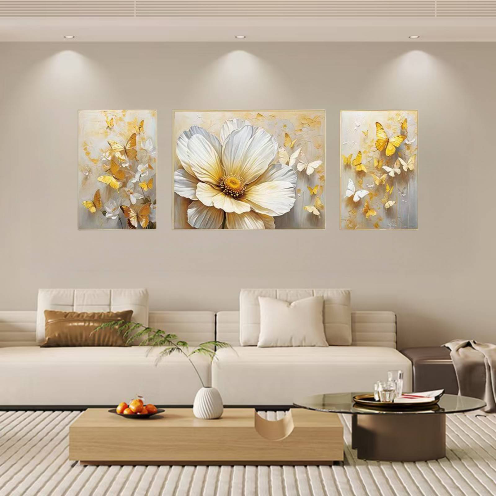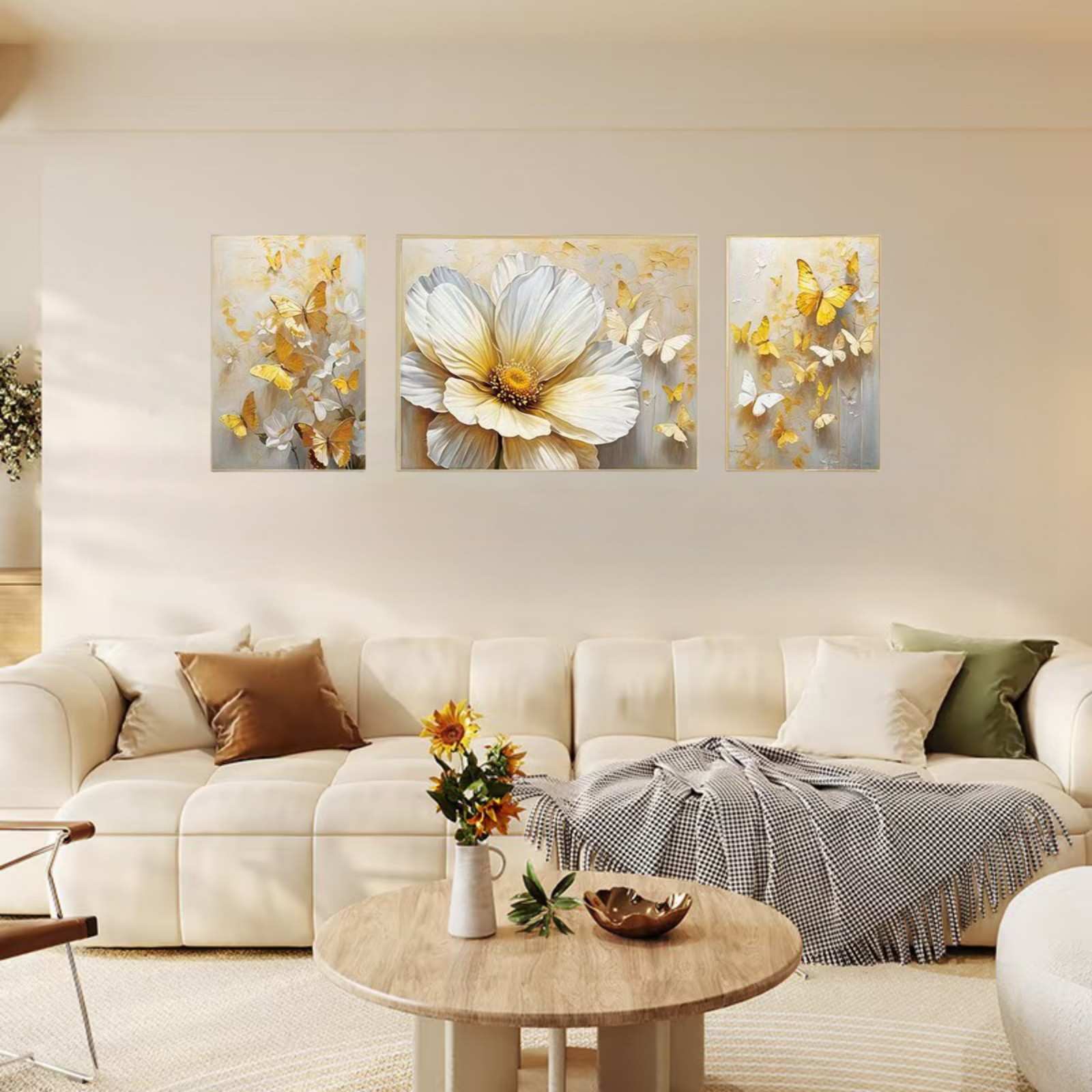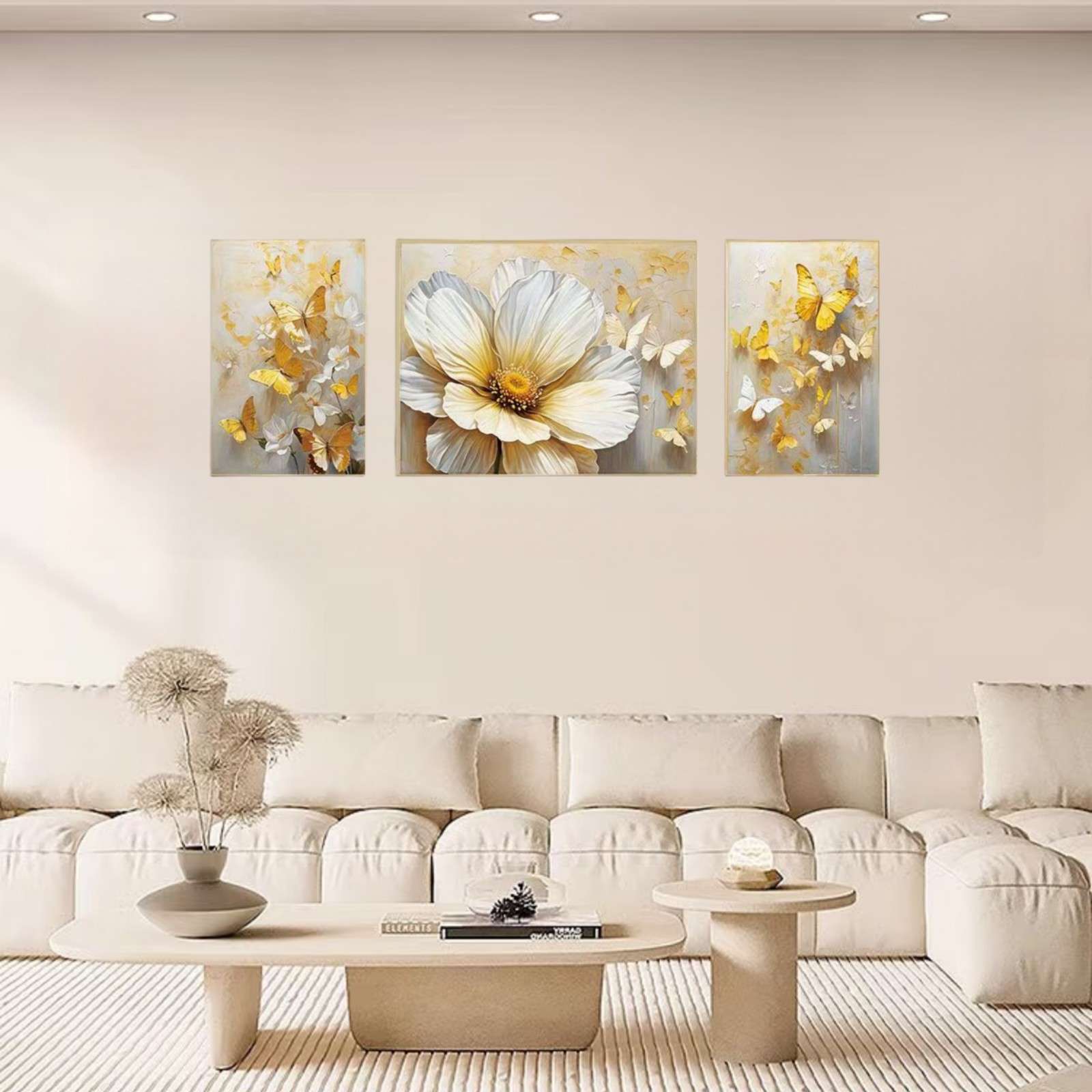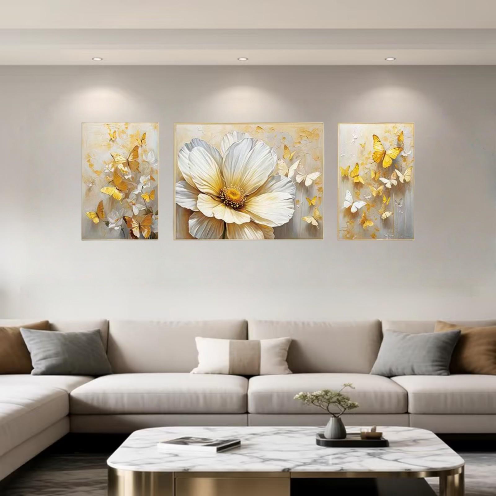 Modern Floral Framed Canvas Wall Art — (3 Piece Set)