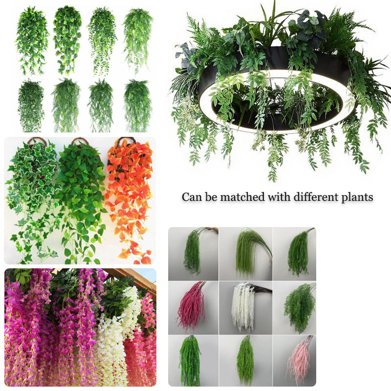 • Realistic artificial hanging plants for natural visual appeal