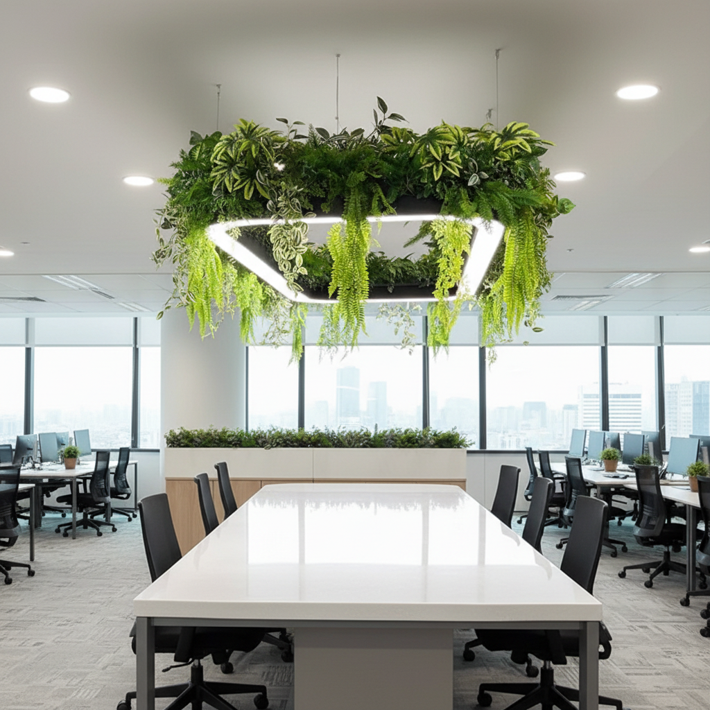 Modern Green Chandelier with Integrated LED Planter