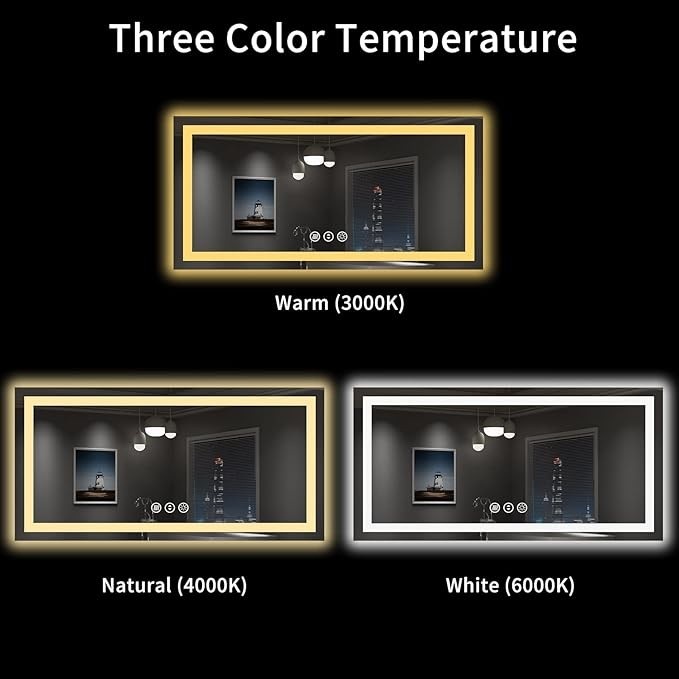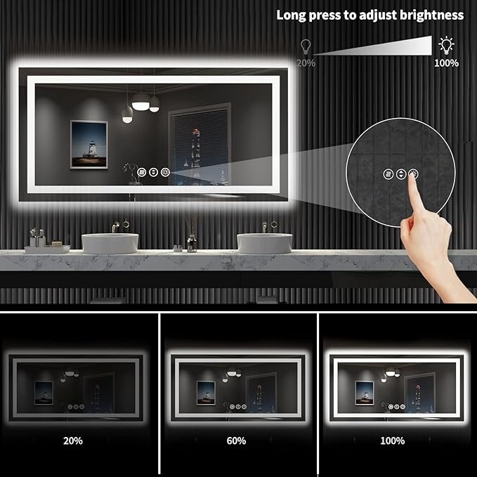 Smart LED Bathroom Mirror with Touch Control & Anti-Fog